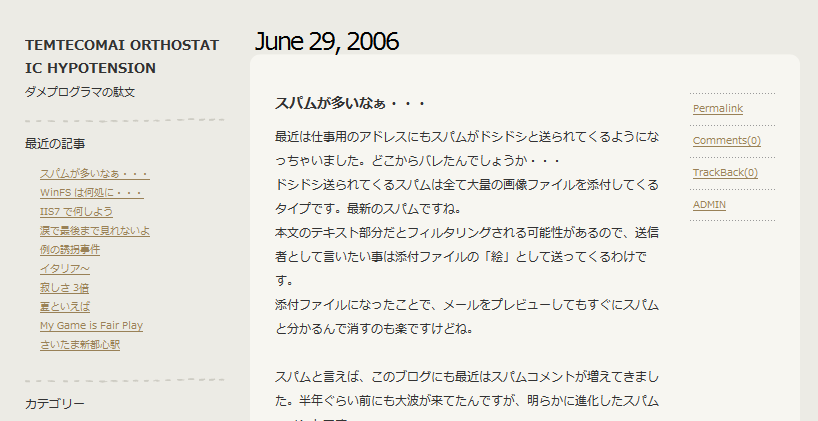 スパムと言えば、このブログにも最近はスパムコメントが増えてきました。半年ぐらい前にも大波が来てたんですが、明らかに進化したスパムコメントです。