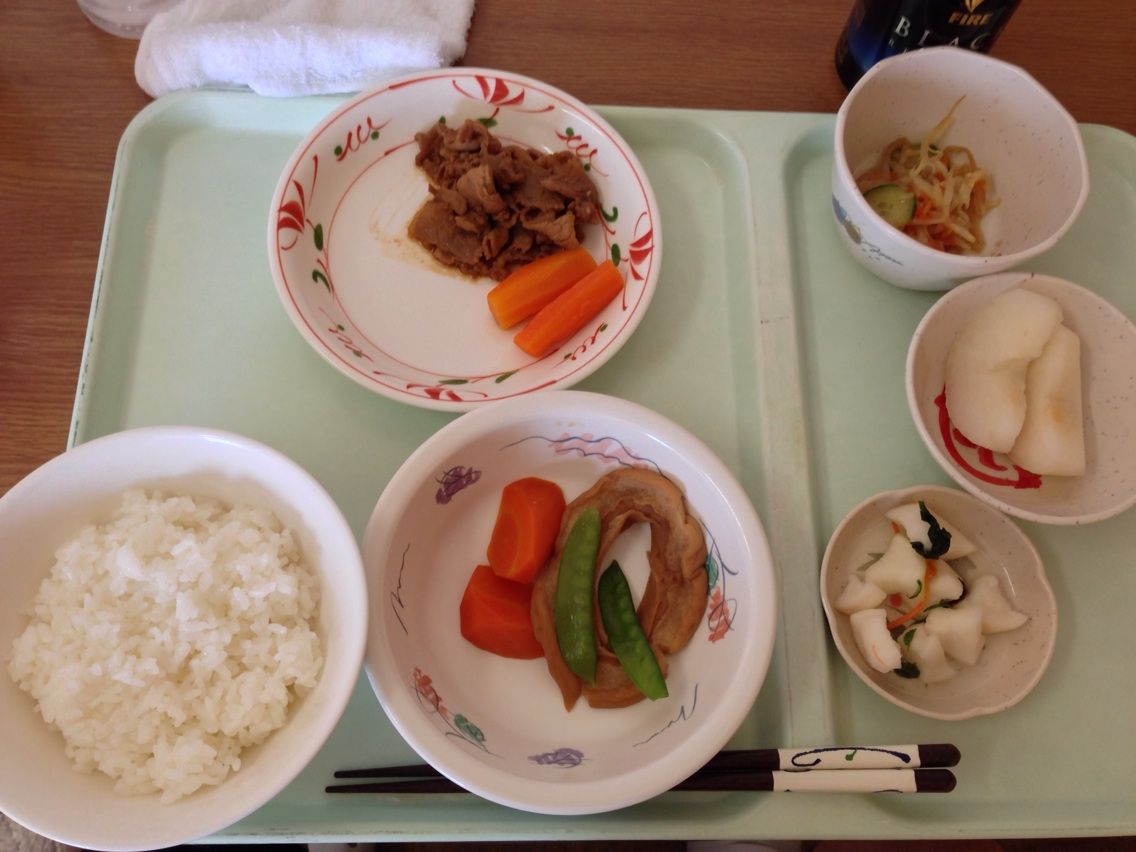 October 04, 2013 一日目の夕飯 済生会一日目の夕飯。 まぁ病院食でしたね。 なんか赤い魚の煮付けほ少し脂が多かった。 ほとんど味付けされていない茄子の煮浸し。 豆腐、御新香、もやしの味噌汁、しっかりして白米。 ご飯が固めなのは救われる タグ :#入院中