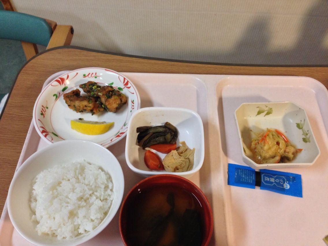 October 06, 2013 ほい、夕飯情報ね 食べ物の話ばかりになってしまったな。 生きていくために食い物は大事だからな。 この右側に配置された 2つ、きつかったなー。 大根おろしに醤油。 せめてナメタケでも乗ってればご飯の上に行けたのに。 そして苦手な酢の物。 タグ :#入院中